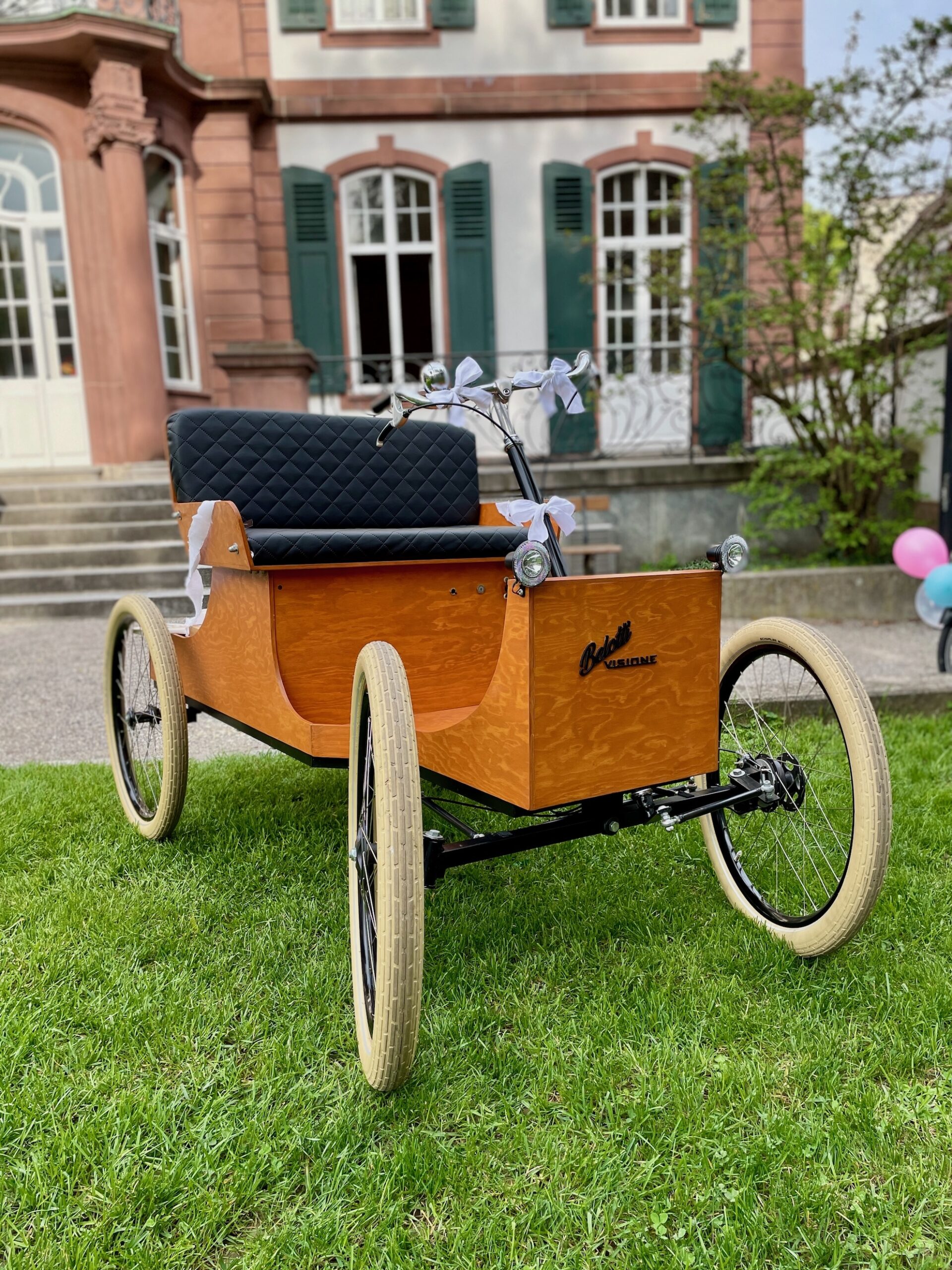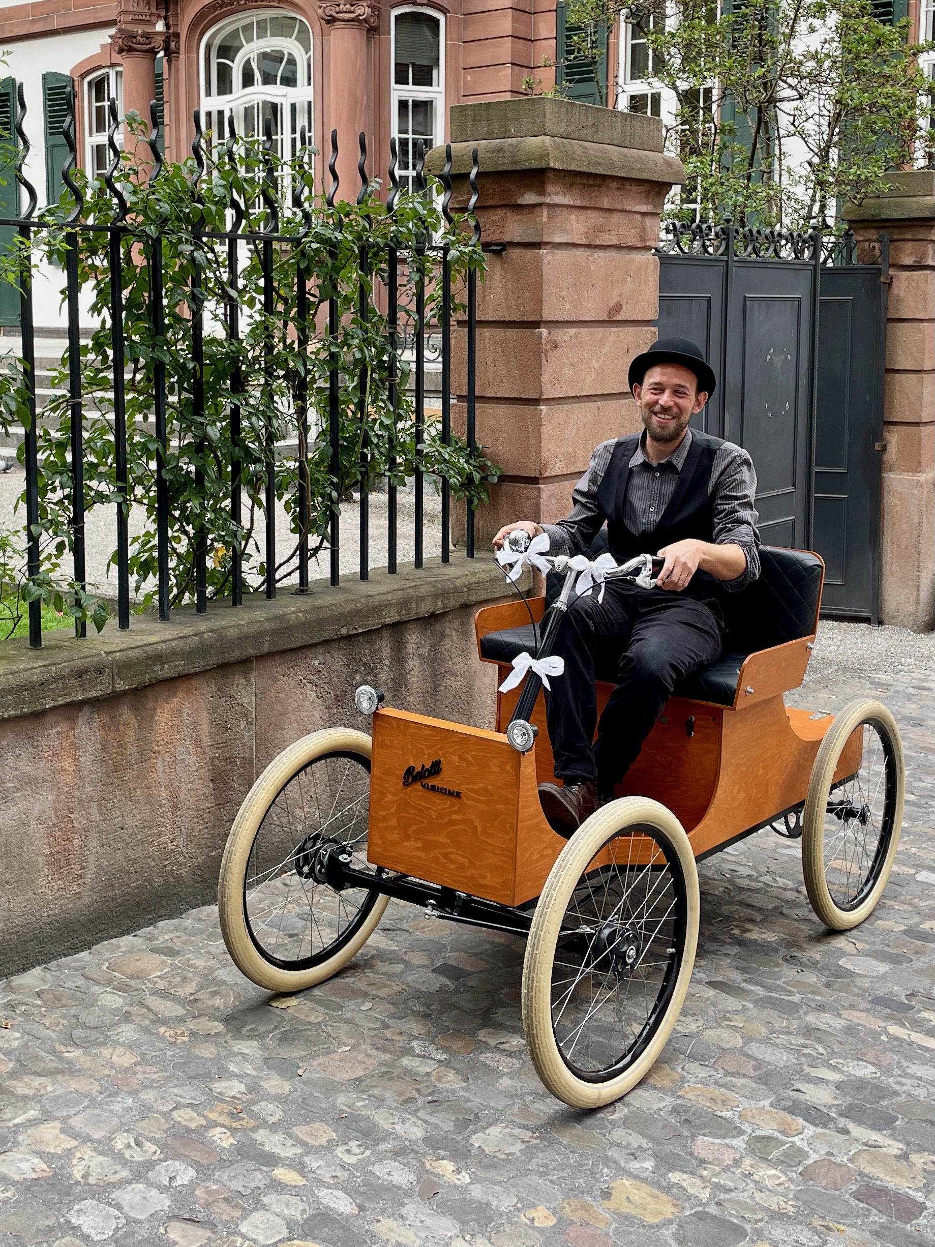 Der Belotti ist kein gewöhnliches Fahrzeug, er ist ein Erlebnis. Inspiriert von den eleganten Automobilen der Jahrhundertwende verbindet er Nostalgie mit zeitloser Schönheit. Das Besondere: Ihr fahrt selbst. Kein Chauffeur, kein Lärm, kein Stress – nur ihr zwei und der Moment. Rechtlich gilt der Belotti als E-Bike. Ihr benötigt also keinen Führerausweis. Einfach losfahren, genießen, ankommen – mit Stil und Freude.